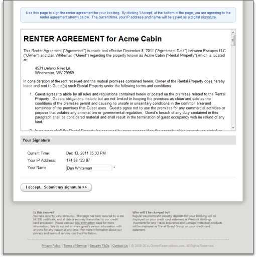 - Secure Storage and Easy Access: Store agreements securely, timestamped with guest IP addresses, for effortless retrieval and downloads.